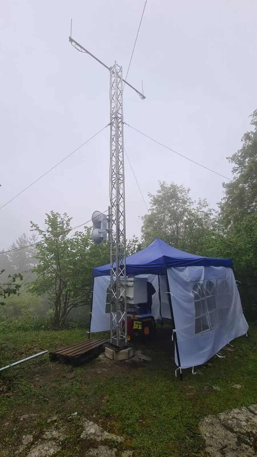 Екипът на Интегра-А инсталира напълно автономна радио система с релейна връзка, слънчево и генераторно захранване. Родопи, май 2024.
