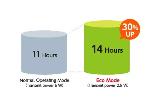 Освен това, тя има нов енергоспестяващ еко режим, който осигурява приблизително 14 часа работа, подобрение с около 30%. Новата версия е снабдена с USB Type-C™ порт за зареждане.IC-M25EURO EVO запазва компактния и лек корпус, както и водещия в индустрията Float’n Flash™ и потопяем дизайн.
