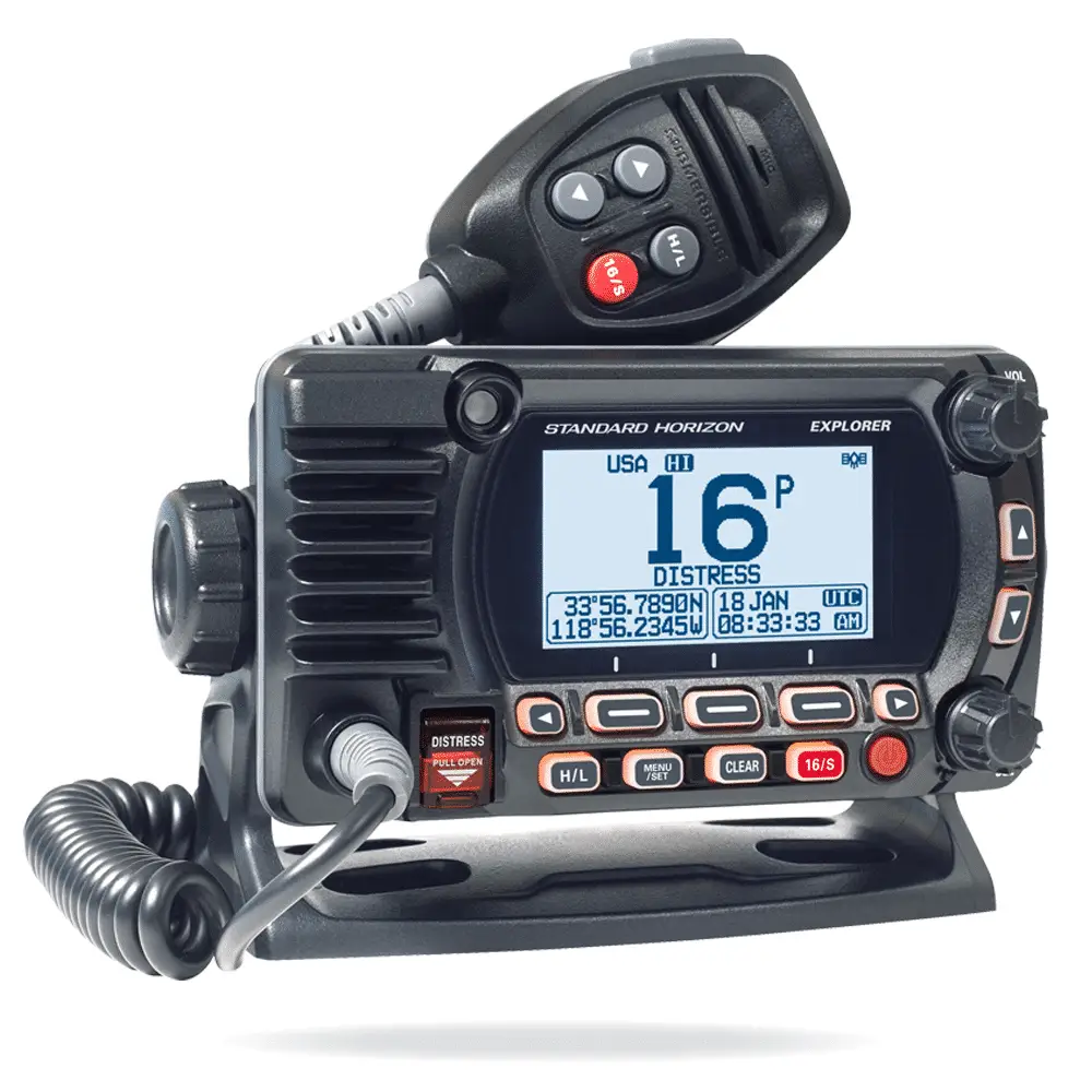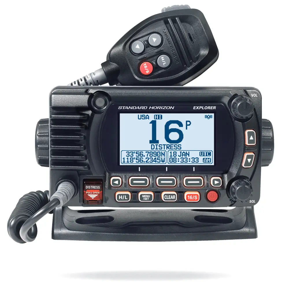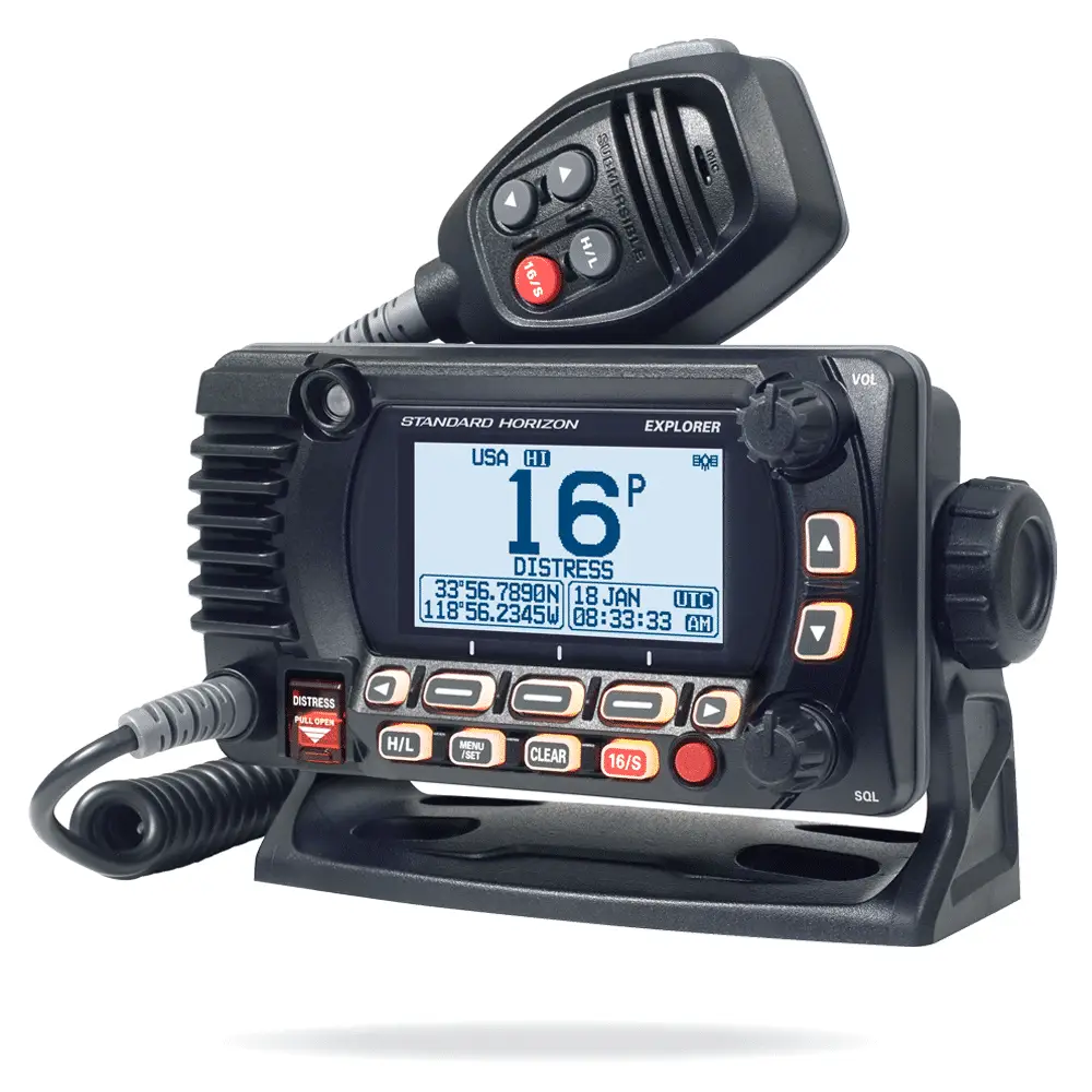 морска бордова радиостанция с къса и компактна задна част на корпуса (дълбочина само 82 мм) от STANDARD HORIZON.