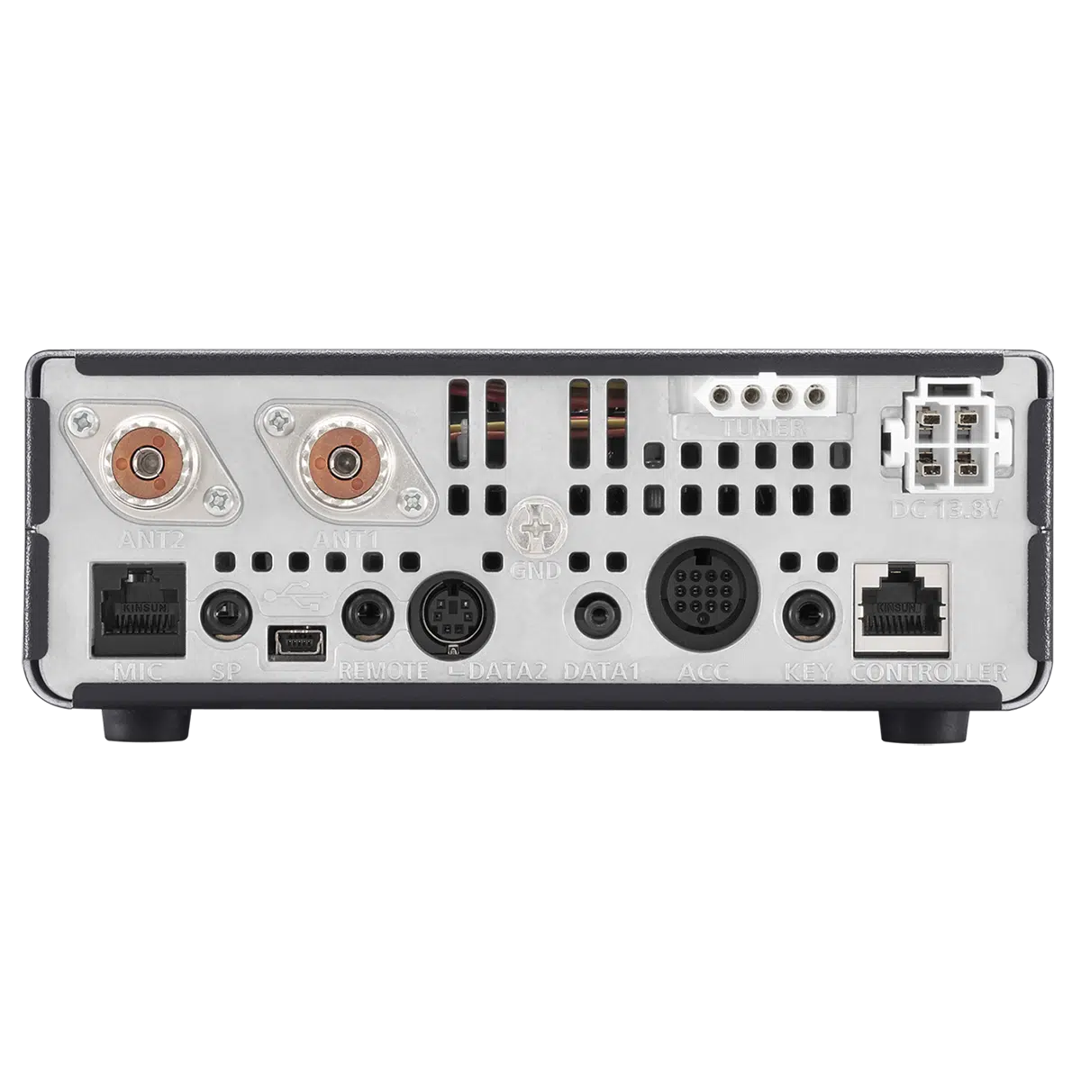 – Два антенни конектора (за КВ/50/70 MHz и 144/430 MHz) на задния панел