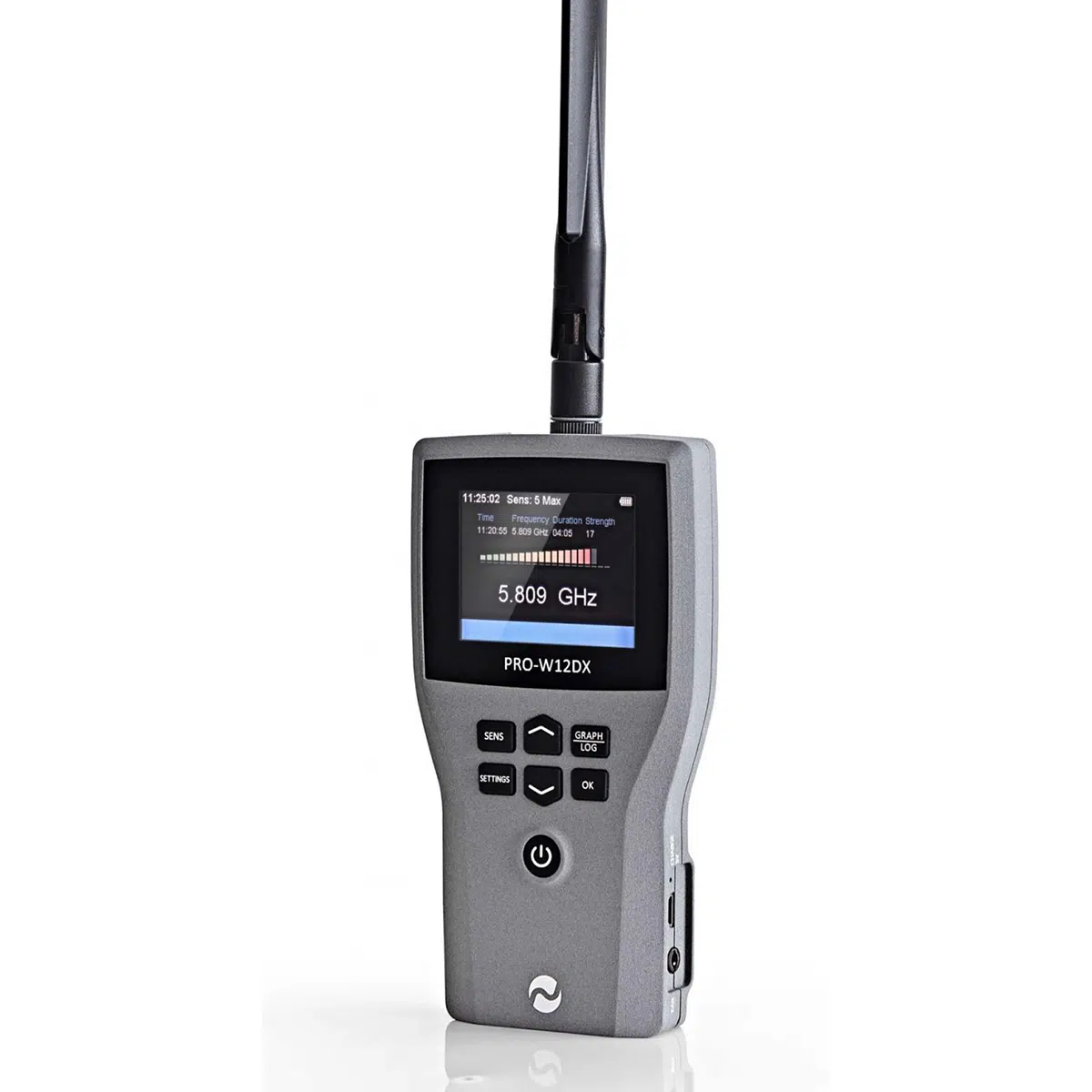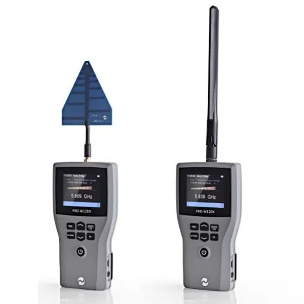 преносим широколентов RF детектор, разработен да открива и локализира сигнали от последно поколение подслушвателни устройства, системи за проследяване, клетъчни и видео устройства. С напълно нов хардуерен дизайн, PRO-W12DX предлага нови функции, които досега не бяха присъщи на преносимите устройства.