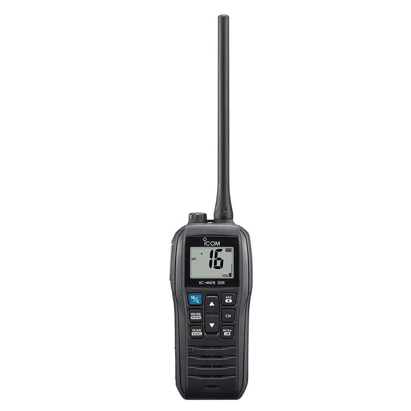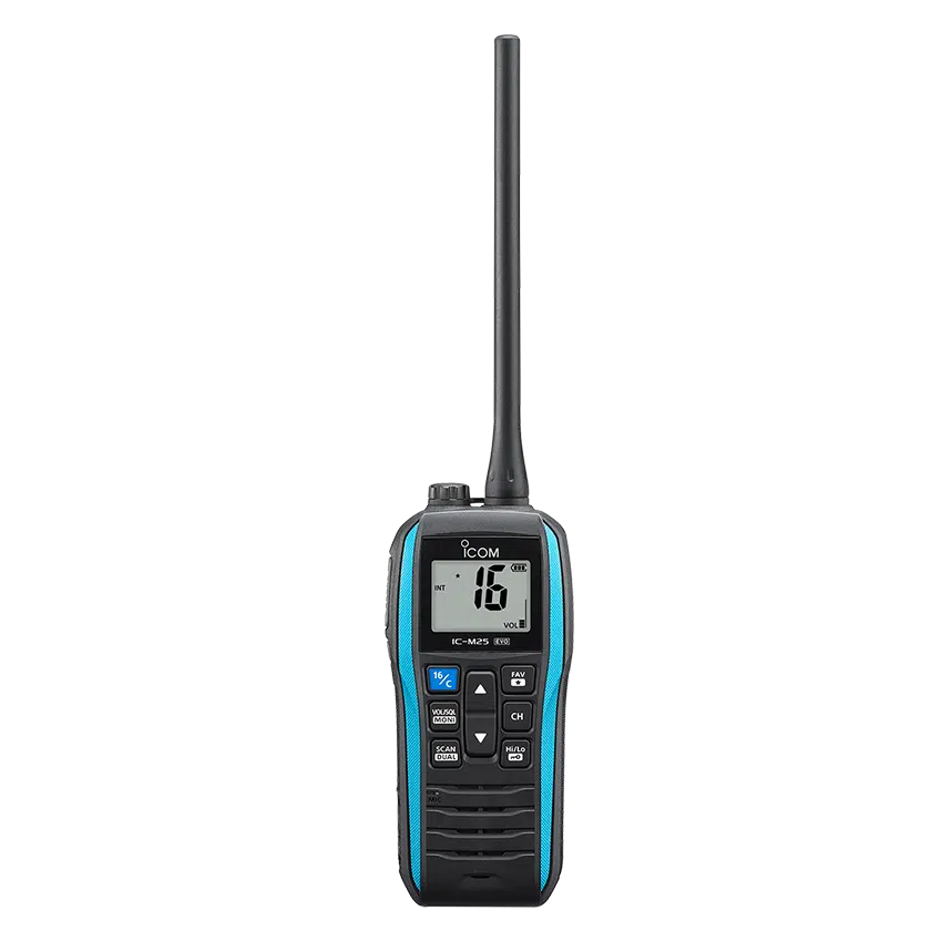 е непотъваща, стилна и носима морска радиостанция от ICOM.