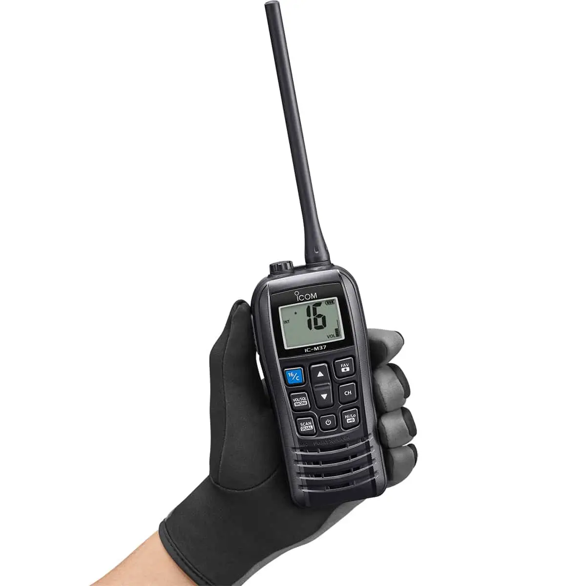 6W носима морска радиостанция от ICOM с функция Плува, не потъва и 12 часа издържливост на батерията.
