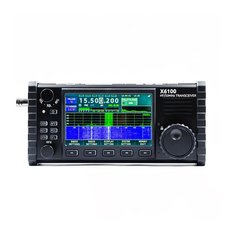 Xiegu X6100 е революционен 10-ватов HF и 6m SDR трансивър с голям цветен дисплей, автоматичен антенен тунер и вградена батерия с висок капацитет.