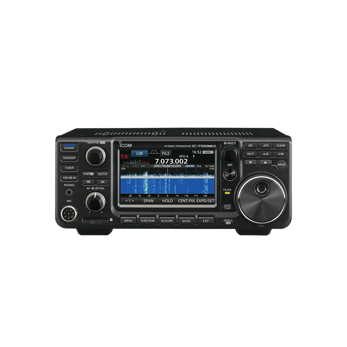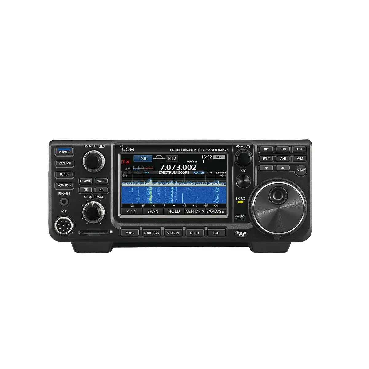 Иновативен късовълнов трансивър с високоефективен спектроскоп и голям, цветен, сензорен TFT дисплей.