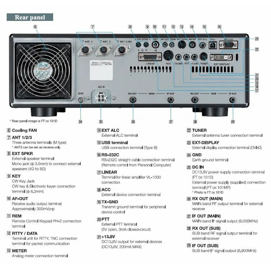 – Честотен диапазон: 1.8-54 MHz (само любителски бандове), 70-70.5 MHz (само UK любителски бандове) Tx, 30 kHz-75 MHz Rx